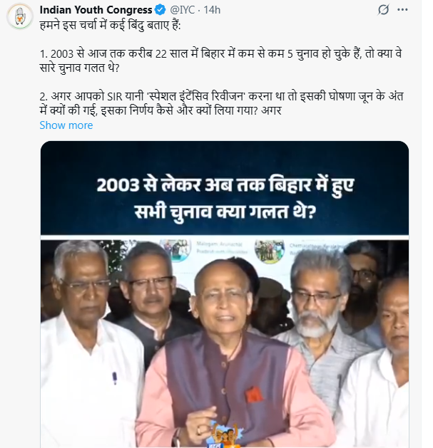 सिंघवी ने चुनाव आयोग से यह सवाल उठाया कि क्या 2003 से लेकर अब तक हुए कई चुनावों में कोई बड़ी गड़बड़ी नहीं बताई गई तो फिर अचानक विशेष संशोधन की आवश्यकता क्यों पड़ी? उन्होंने आगे कहा कि क्या 2003 से अब तक 22 सालों में 4- 5 चुनाव हुए, क्या वे सब गलत थे? चुनाव आयोग इन बातों को स्पष्ट करे।