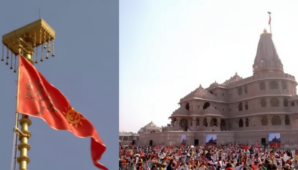जैसे ही ध्वज मंदिर के शिखर पर उच्चतम बिंदु तक पहुँचा, पूरा वातावरण श्रद्धा और भक्ति से भर गया।